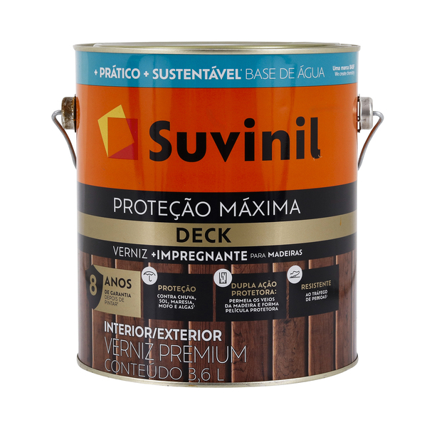 Verniz Deck para Madeira Base Água Brilhante Proteção Máxima Natural 3,6L Suvinil